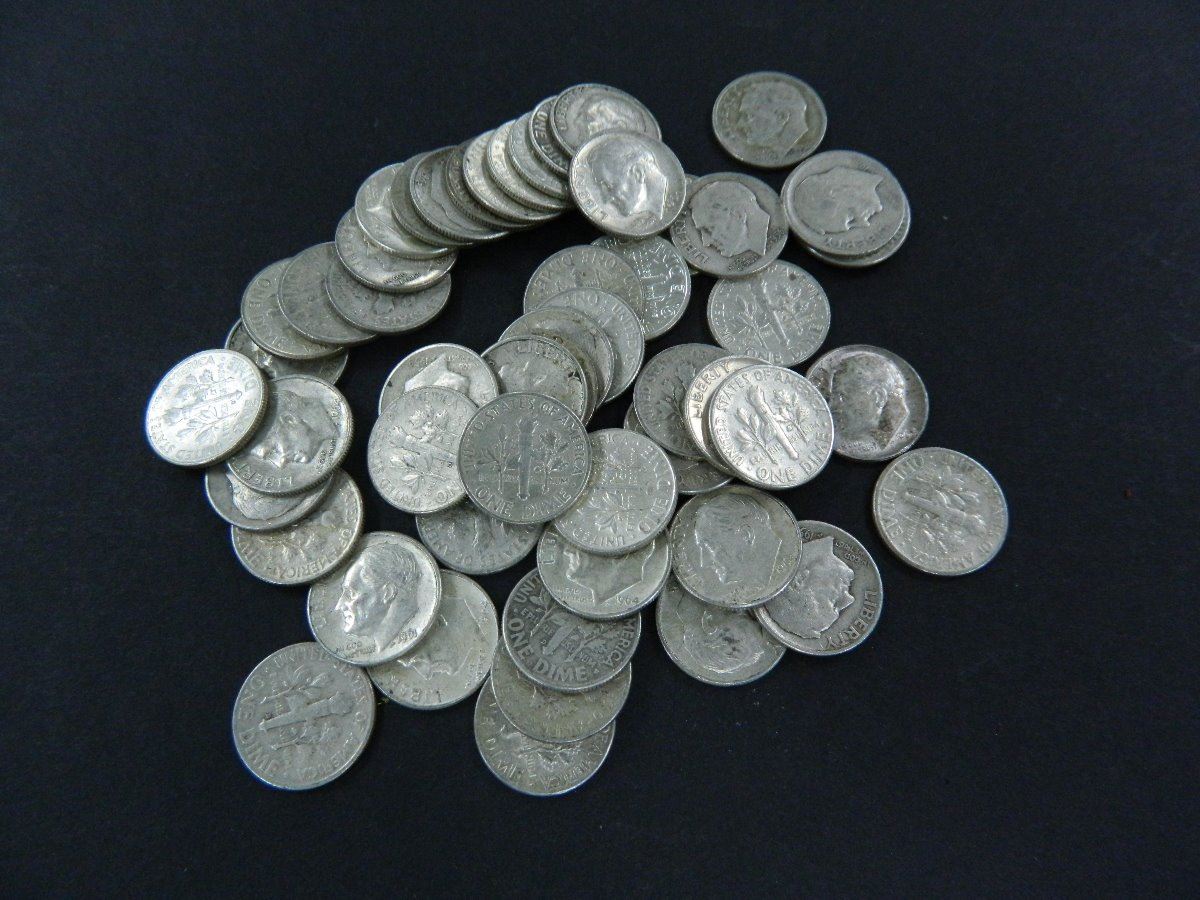 Roll of 50 (Fifty) 90% Silver U.S. Dimes, Unsearched, All One Money