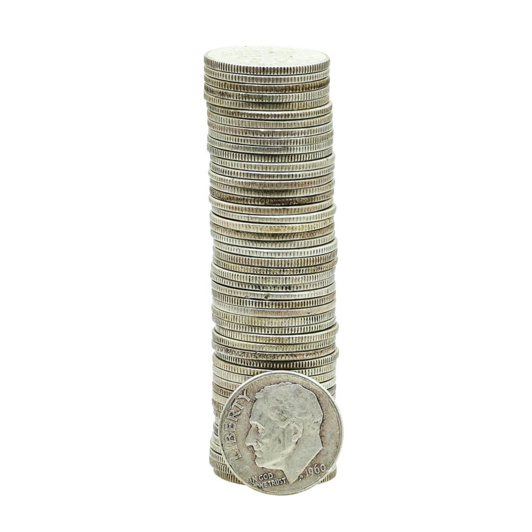 One Roll of (50) Mixed Date Roosevelt Dime Coins.