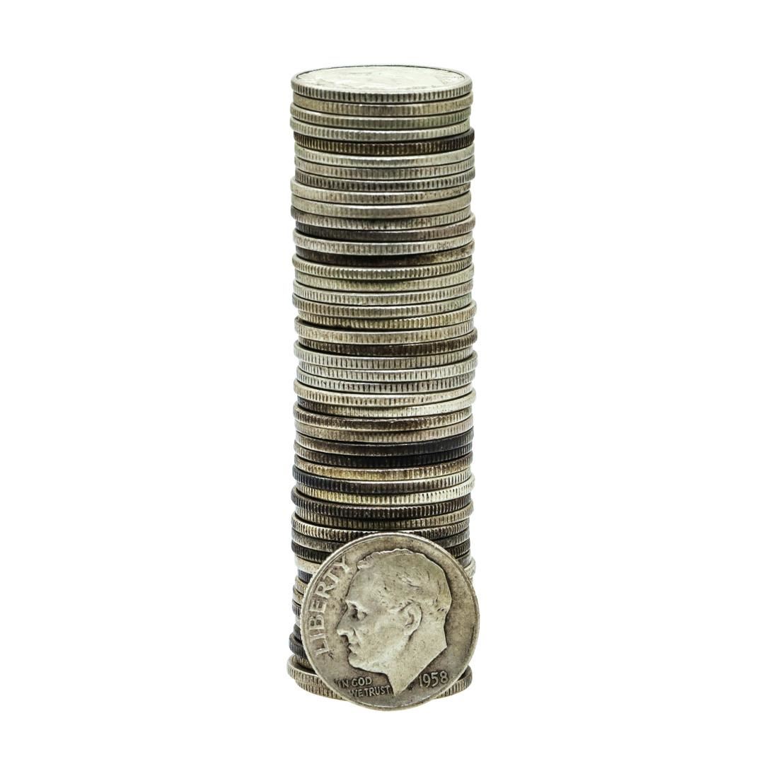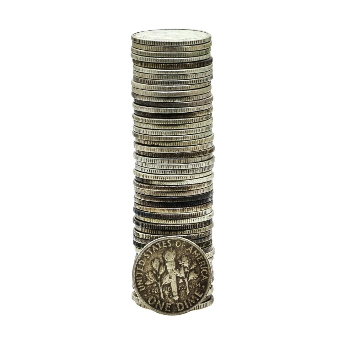 One Roll of (50) Mixed Date Roosevelt Dime Coins.