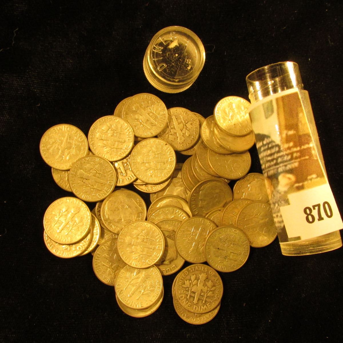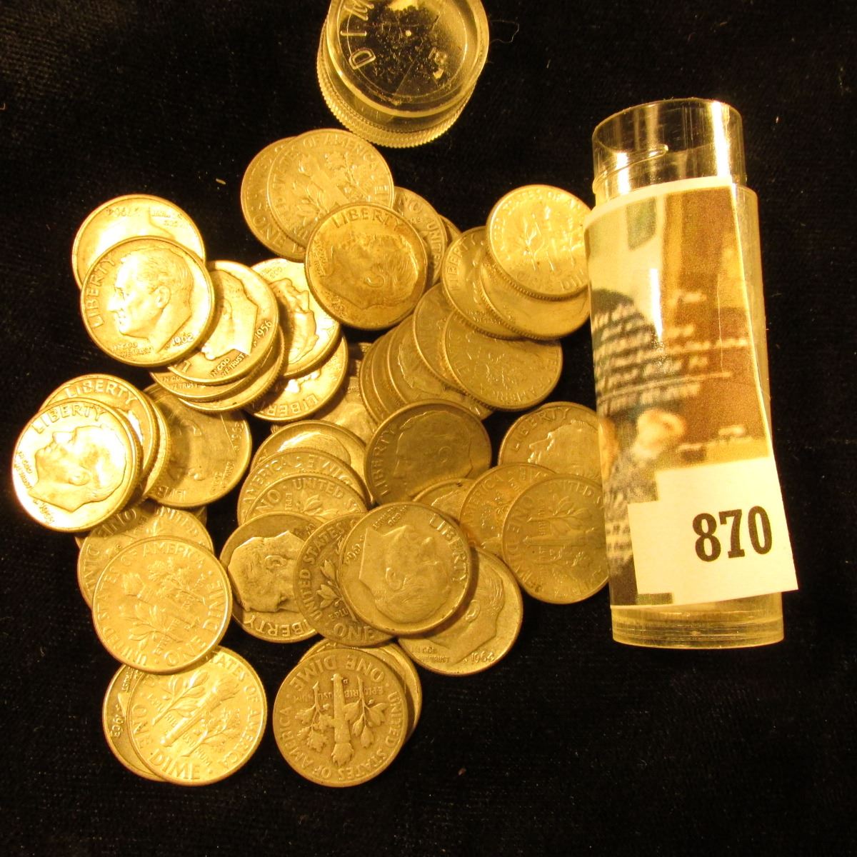 Roll of (50) Old Silver Roosevelt Dimes in a plastic tube.