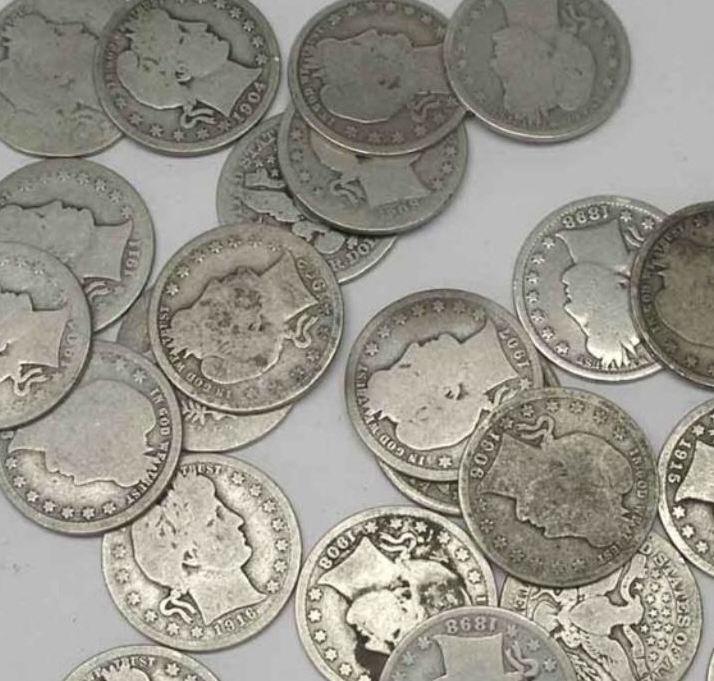 Roll of Barber Quarters ag-xf grades- 1892-1916