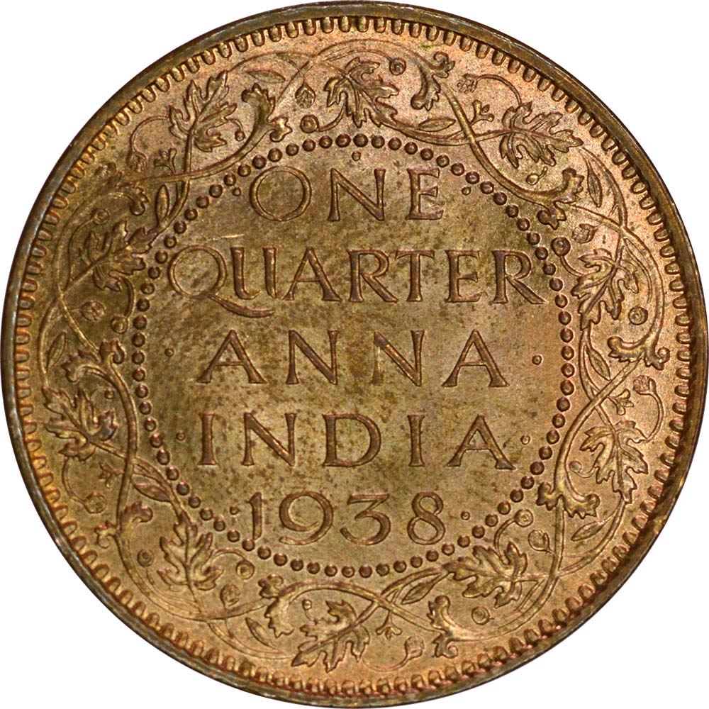 Roll of Bronze One Quarter Anna of King George VI of Bombay Mint of 1938.