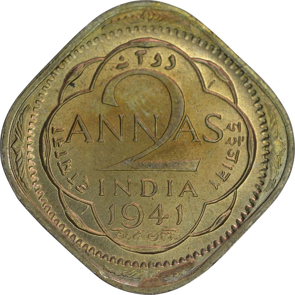 Roll of 1941, King George VI, Cupro Nickel 2 Annas, Calcutta Mint, T/II, (PR # 907), UNC.