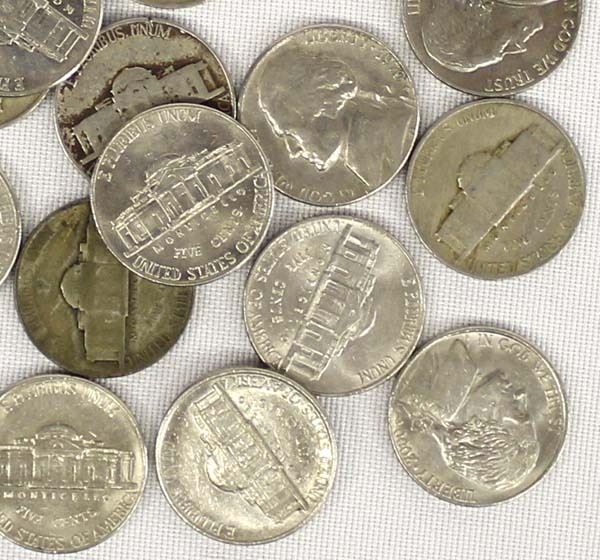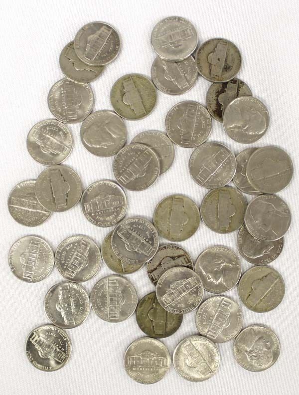 Roll of Mixed Date Jefferson Nickels, approximate value $30, includes 1951, 1954, 1959, 1968S, 1964, 1990P, 1995D, 1997D, 2000D, 2001D, 2002D, 2003D, 1994D, 1996D, 2002P, 1982D, 1940, 1941, 1947,1942, 1949, 1992D, 2000P, 1970D, and 1945
