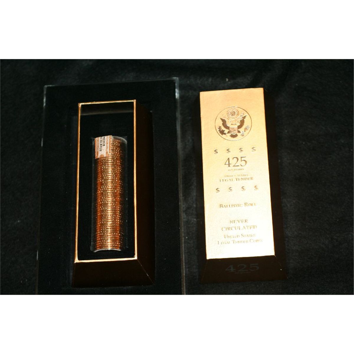 Roll of Presidential $1 UNC and unopened Coins in a Gold-colored Ingot Box