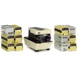 Rollei P 11 Franke & Heidecke, Braunschweig. Projektor für Diapositive 6 x 6 cm und Kleinbild. "Heidosmat 2,8/150", Netzkabel und Fernbedienung. Wechselmechanik ist nicht in Ordnung. Mit Anleitung, Prospekt, ca. 36 Magazinen oder Umfüllmagazinen für 6 x 6, teilweise gefüllt, 4 Packungen "Gepe"-Rahmen und 8 Kleinbild-Magazine, teilweise gefüllt. For slides 6 x 6 and 24 x 36. "Heidosmat 2,8/150". Mechanically not working. With instructions, leaflet (German), approx. 36 magazines for 6 x 6, 4 boxes with "Gepe" frames and 8 magazines for 24 x 36, partly filled. – (3/–) – € 150/250 – (38/4)