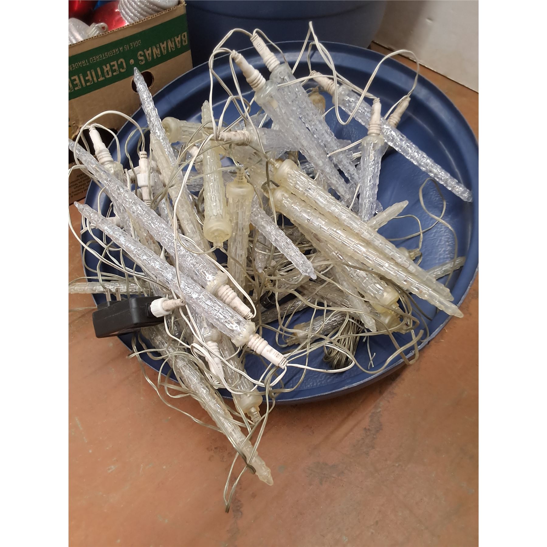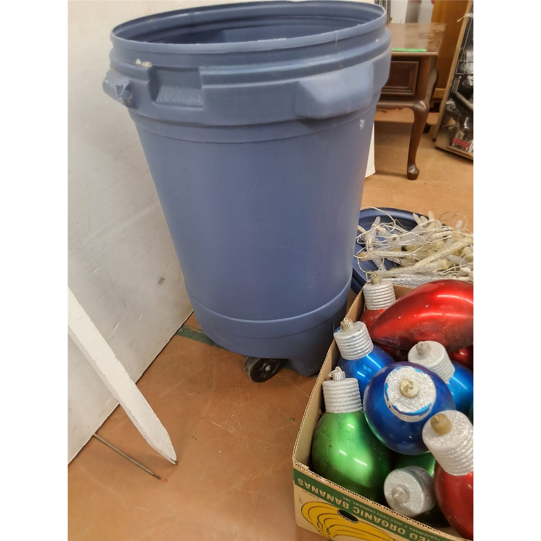 * Roller Garbage Can, Icicle String Lights - Tested, (11) Display Bulbs, Santa Stop Sign - PU Only