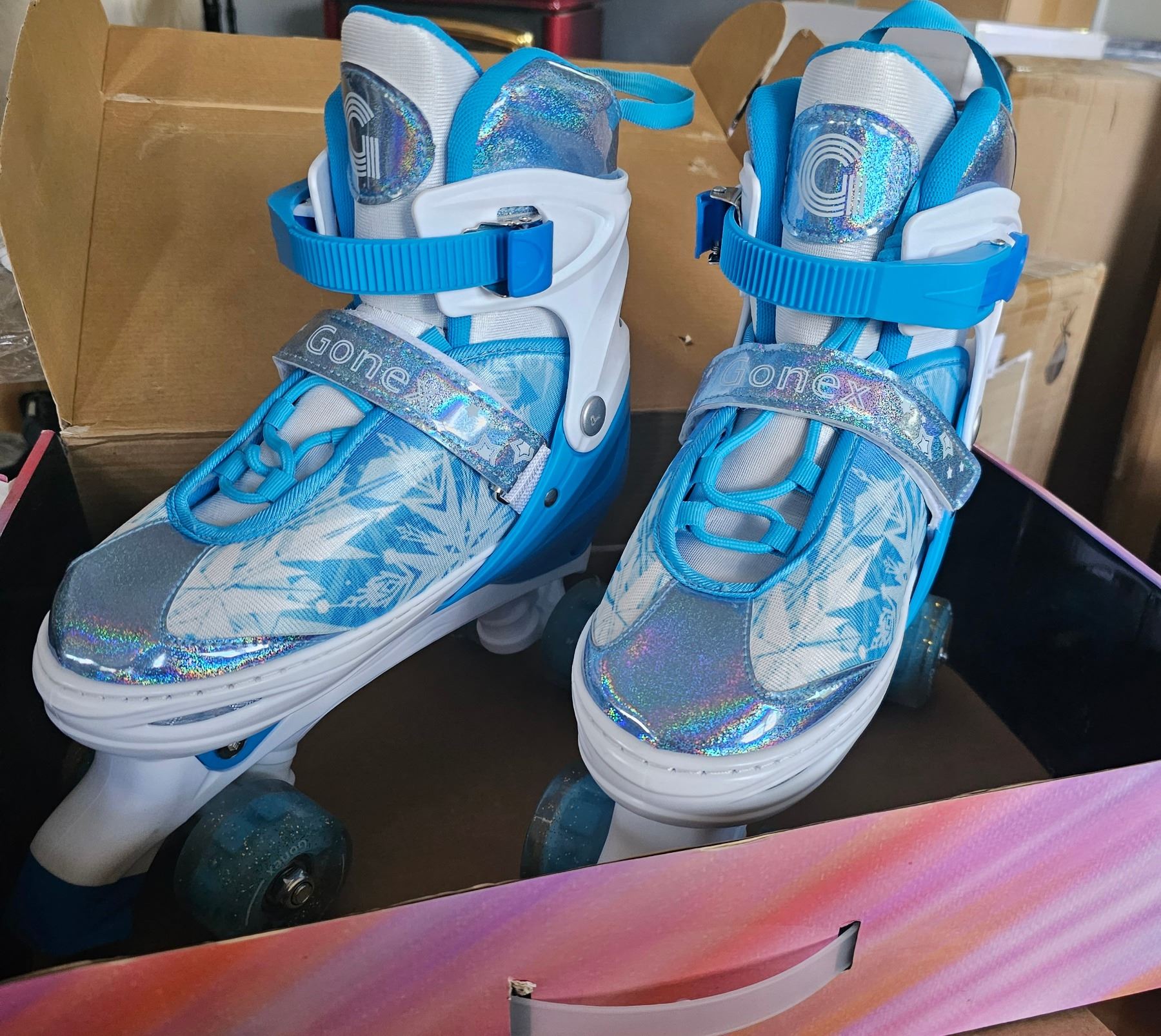 Gonex, Girls Adjustable Roller Skates, Sizes 4 To 7, Great For Growing Feet, Light up Wheels, Shelf Pull, New Condition
