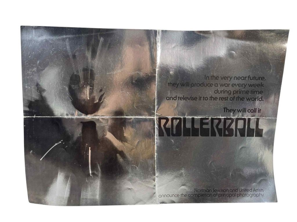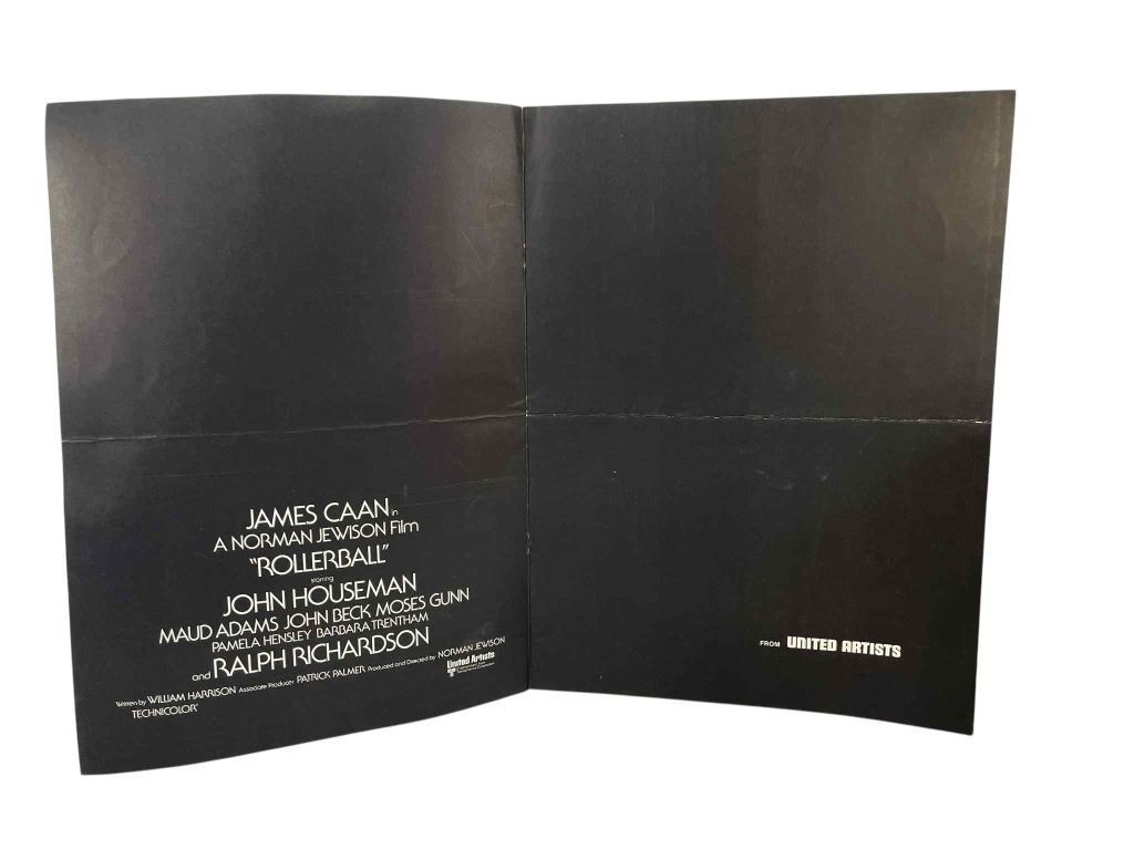Original press folder from the Norman Jewison directed dystopian science fiction sports film 'Rollerball' (1975), starring James Caan, John Houseman, Maud Adams, John Beck, Moses Gunn and Ralph Richardson.