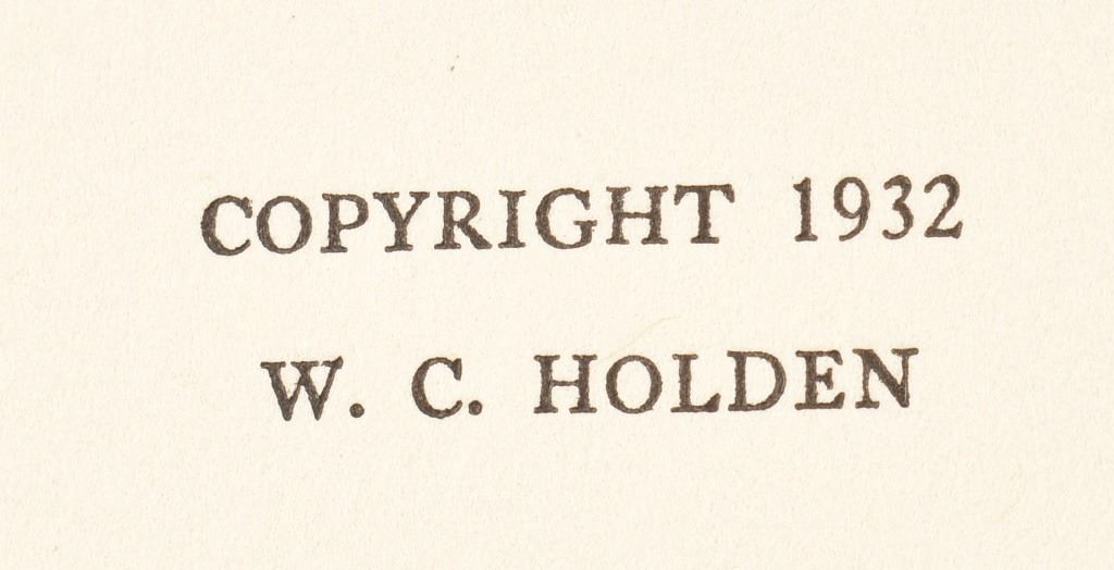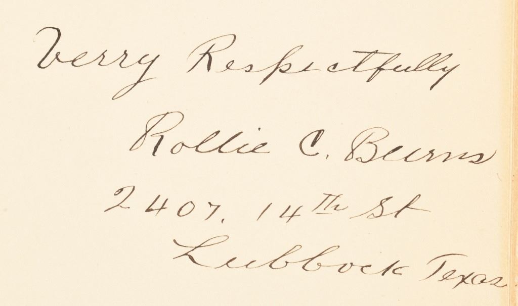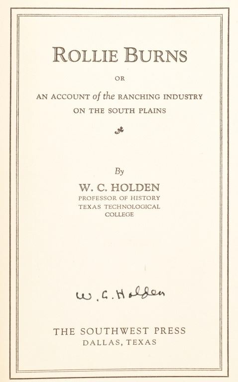 1932 First edition in fine condition, signed by both Rollie Burns, and author W.C. Holden. Published by The Southwest Press, Dallas Texas.