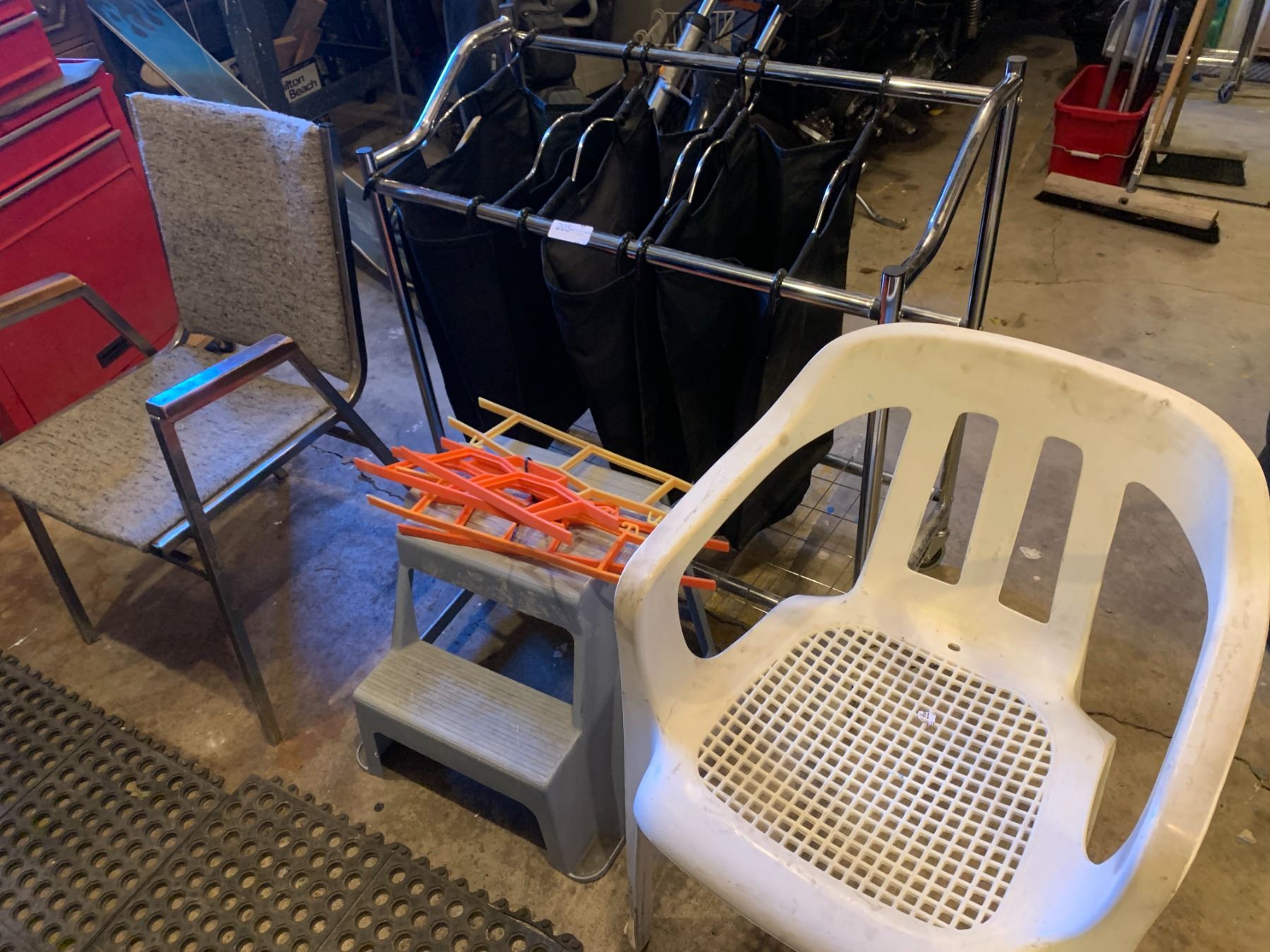 Rolling Chrome Laundry Hamper Plus Chairs Step Stool and Five Cord Winders