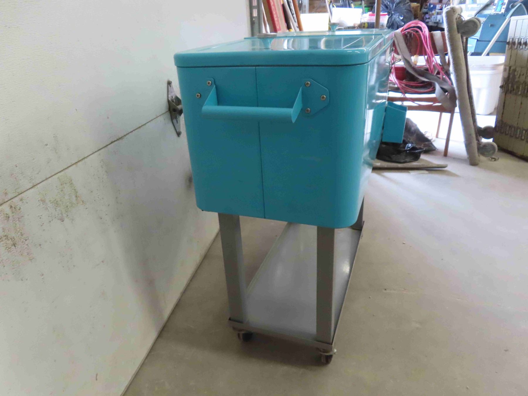 Rolling Coleman Cooler 34'' x 16'' x 35'' with Bottom Shelf, Bottle Opener.
