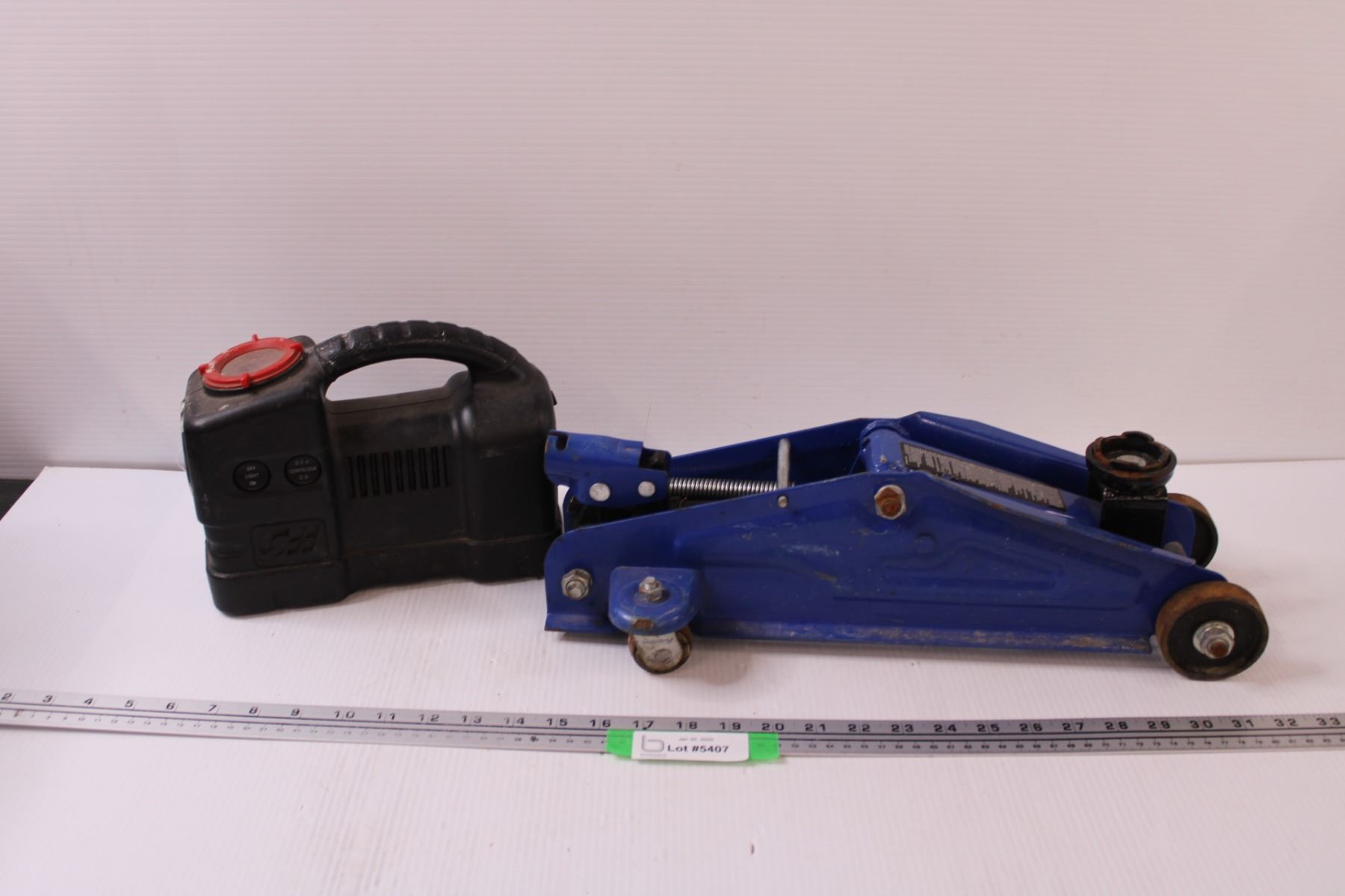 Rolling Jack (Missing Handle, As Is) & CH Roadside Light w/Compressor (As Is)
