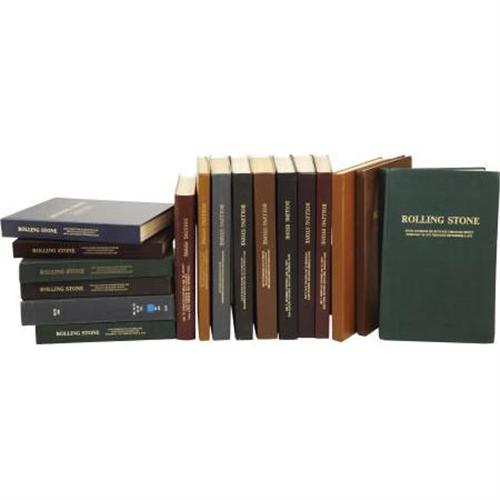 <B><I>Rolling Stone</B></I></B></I> <B>Magazine #1-210 Bound Volume Set.</B></I> A collection of the first 210 of the influential Rock magazine that helped shape a generation, dating from November 9, 1967 to April 8, 1976, trimmed and bound into a set of 17 large hardcover volumes. The contents are in Very Fine condition with mild tanning and wear; and the volumes themselves exhibit some very mild corner bumping and edge wear. A great archive from a fascinating time in American history.<BR><BR><b>Shipping:</b> Books & Catalogs (<a target="_blank" href="http://www.heritageauctions.com/common/shipping.php">view shipping information</a>)
