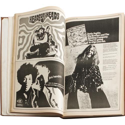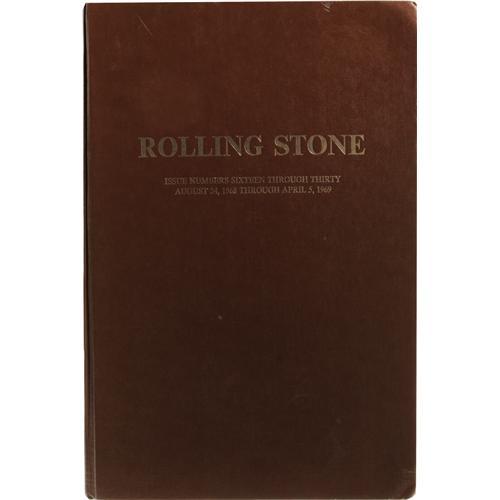<B>Rolling Stone Magazine #16-30 Bound Volume.</B></I> A collection of 15 vintage issues of the venerable magazine, dating from August 24, 1968 to April 5, 1969, trimmed and bound in a large hardcover volume. The contents are in Very Fine condition with mild tanning and wear, and the cover of the volume exhibits some corner bumping and edge wear.<BR><BR><b>Shipping:</b> Flat Material, Large (<a target="_blank" href="http://www.heritageauctions.com/common/shipping.php">view shipping information</a>)