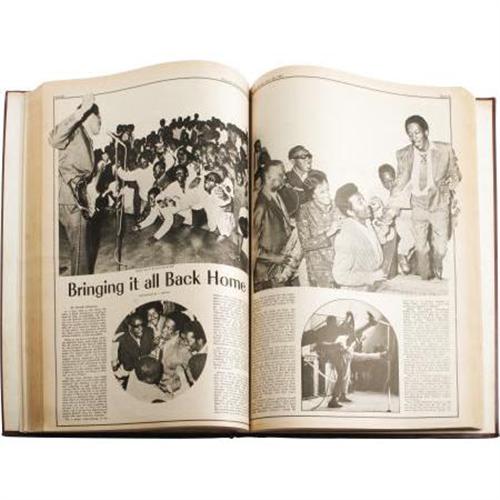 <B>Rolling Stone Magazine #31-45 Bound Volume.</B></I> A collection of 15 vintage issues of the groundbreaking magazine, dating from April 19 to November 1, 1969, trimmed and bound in a large hardcover volume. The contents are in Very Fine condition with mild tanning and wear; the cover of the volume exhibits some corner bumping and the spine is slightly loose.<BR><BR><b>Shipping:</b> Flat Material, Large (<a target="_blank" href="http://www.heritageauctions.com/common/shipping.php">view shipping information</a>)