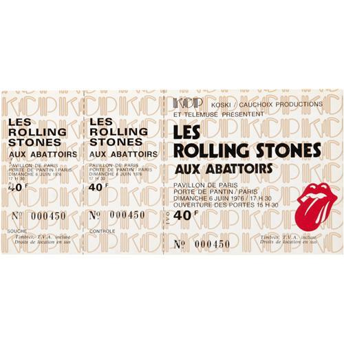 <B>Rolling Stones Banner and Ticket (1976)</B></I> A 30" x 12" felt Rolling Stones banner with an unused ticket for a June 6, 1976 Paris performance, both in Very Fine condition.<BR><BR><b>Shipping:</b> Flat Material, Small (<a target="_blank" href="http://www.heritageauctions.com/common/shipping.php">view shipping information</a>)