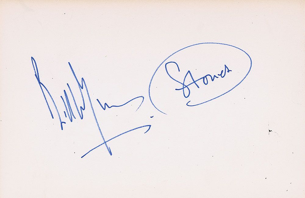 Felt tip signature, “Bill Wyman, Stones,” on an off-white 5.5 x 3.5 card. In fine condition.