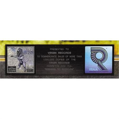 <B>Rolling Stones Custom</B></I> <B><I>Bridges to Babylon</B></I></B></I> <B>RIAA Platinum Album Award.</B></I> A one-of-a-kind RIAA platinum award presented to Virgin Records to commemorate the sale of one million copies of the Stones' 1997 album. The custom-made award features layered images of the band members and album art, creating a striking 3-D effect. In Excellent condition, and framed to an overall size of 38" x 25.5".<BR><BR><b>Shipping:</b> Framed - with Glass, Small (<a target="_blank" href="http://www.heritageauctions.com/common/shipping.php">view shipping information</a>)