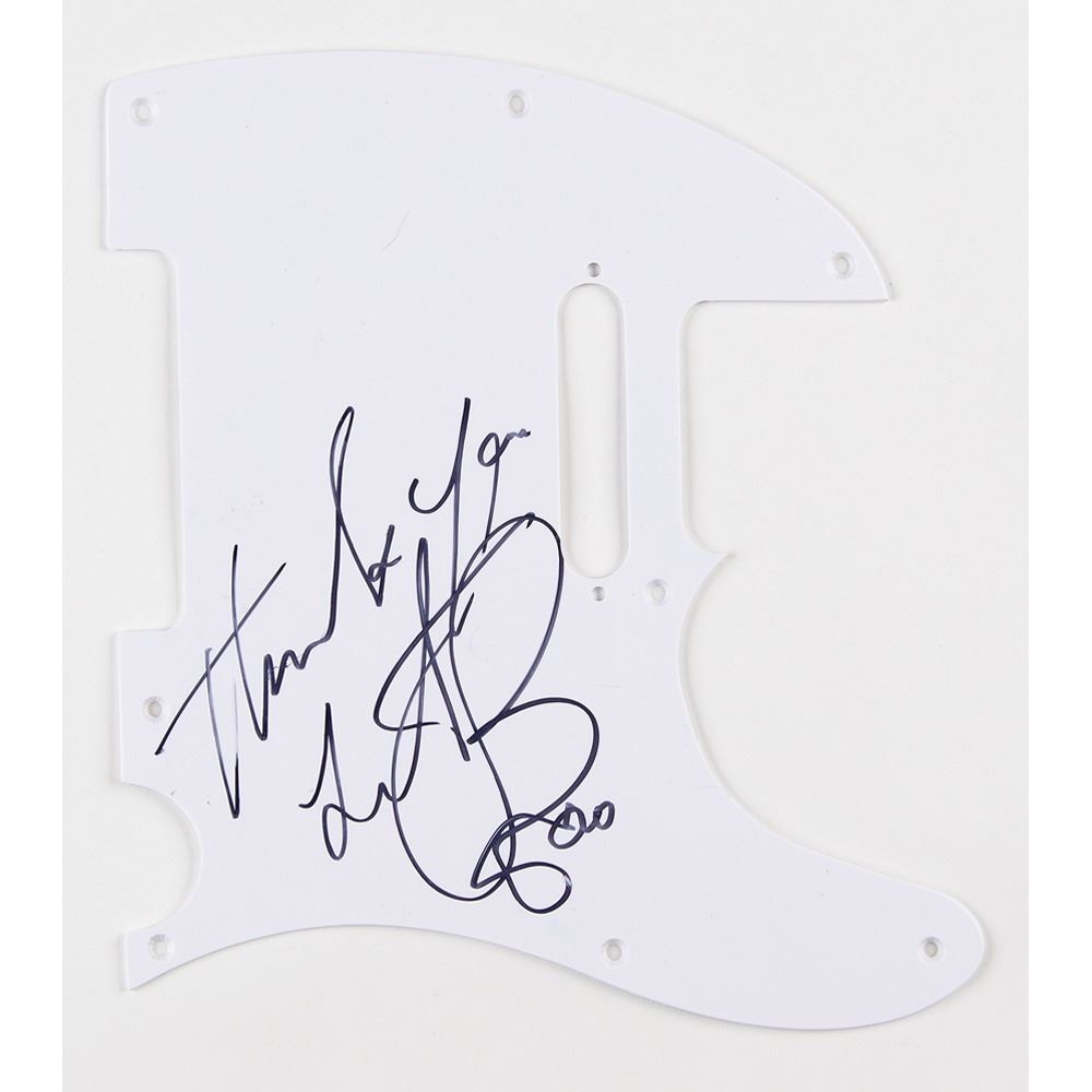 White pickguard for a telecaster-style electric guitar, signed in black felt tip by the late Rolling Stones drummer Charlie Watt, "Thank you, love, Charlie Boy." In fine condition.