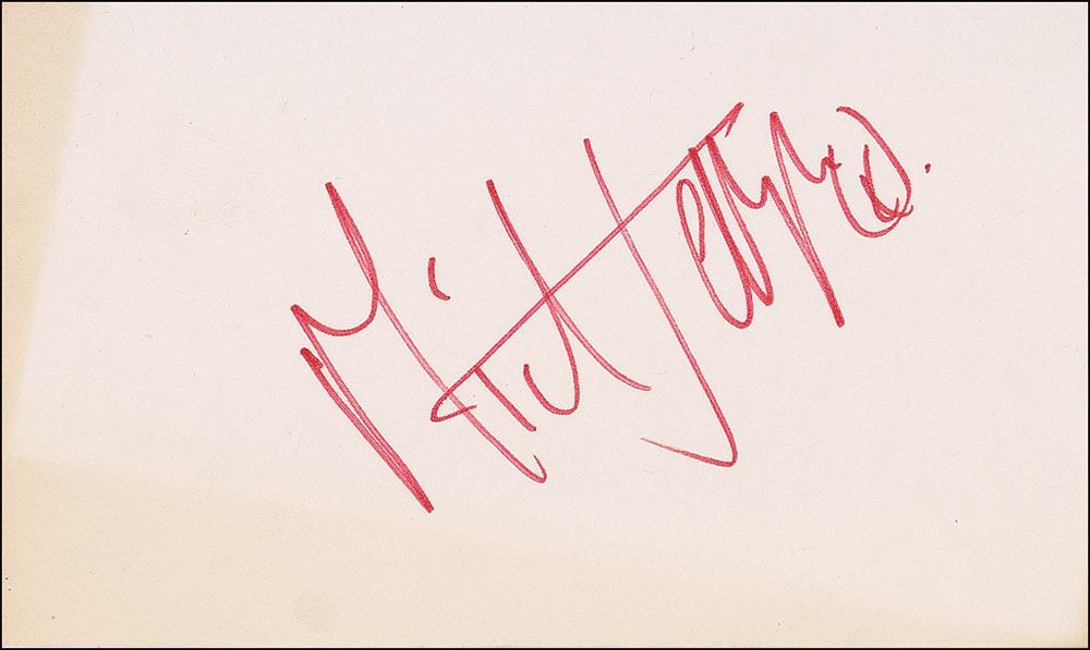 Felt tip in-person signatures of Mick Jagger and Keith Richards on individual off-white cards. In fine condition, with light edge toning to Jagger’s card approaching in-person signature.
