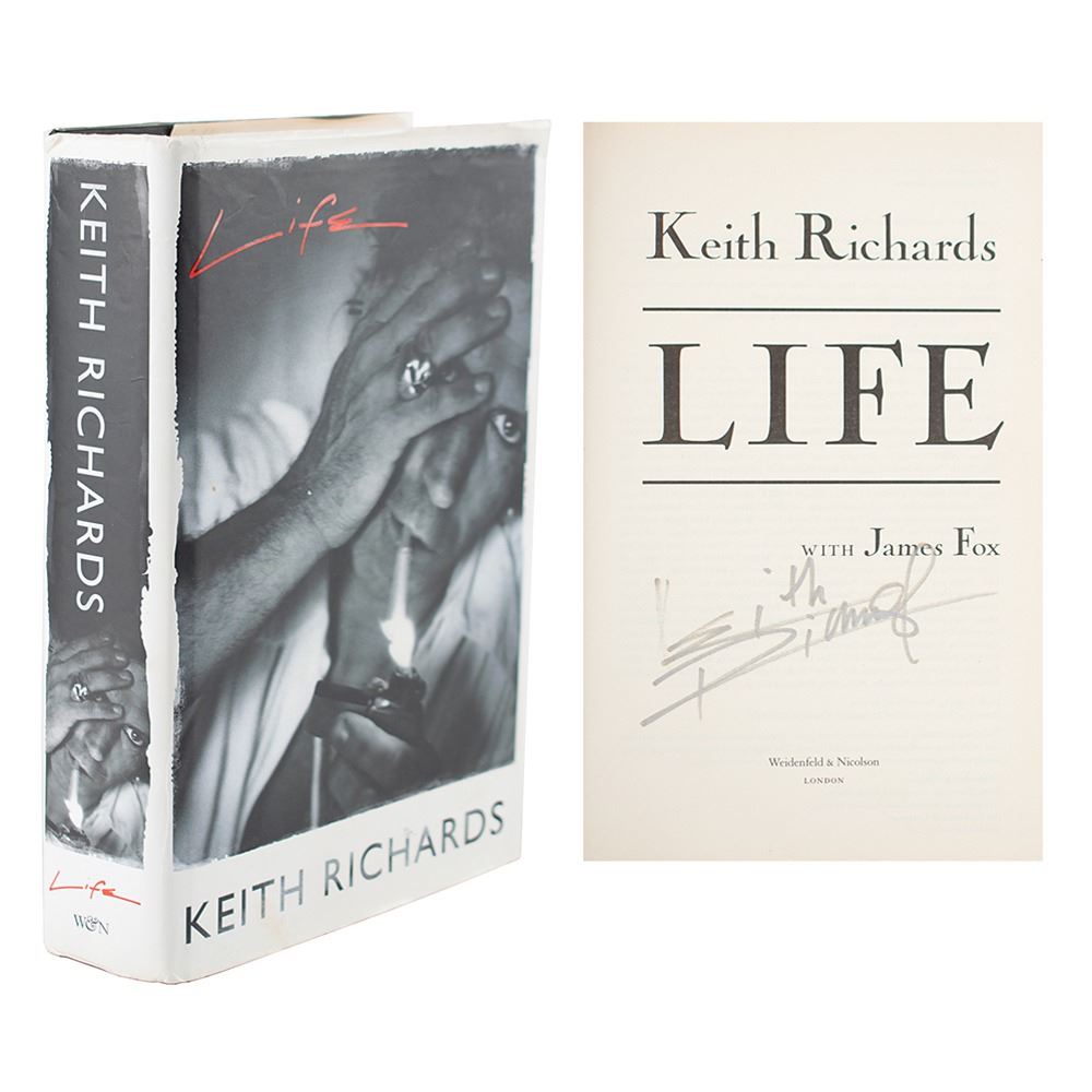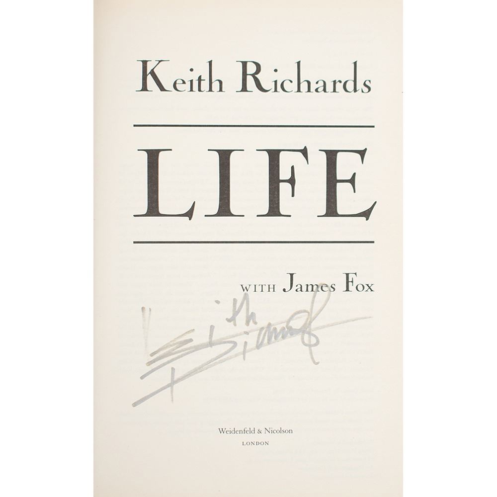 Signed book: Life. London, England: Weidenfeld & Nicolson, 2010. Hardcover with dust jacket, 6.25 x 9.5, 564 pages. Signed on the title page in silver ink by Keith Richards. In fine condition, with some light creasing and wear to the dust jacket.