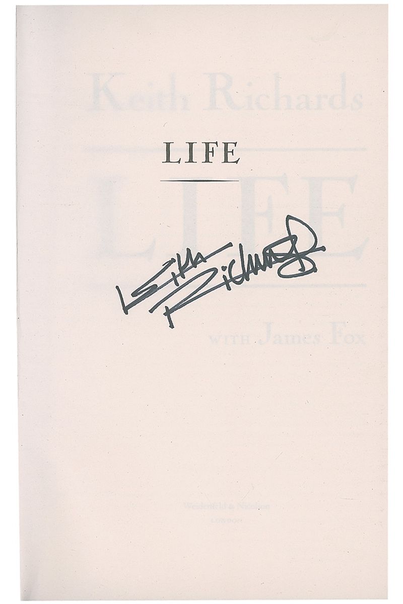 Signed book: Life. First edition, first printing. London: Weidenfeld and Nicolson, 2010. Hardcover with dustjacket, 6.25 x 9.5, 564 pages. Signed on the half-title page in black felt tip. Book condition: NF/VG+. Black paper-covered boards, minimal creasing at spine-ends. Dust jacket has minor creasing to edges. Accompanied by a certificate of authenticity from Tracks.