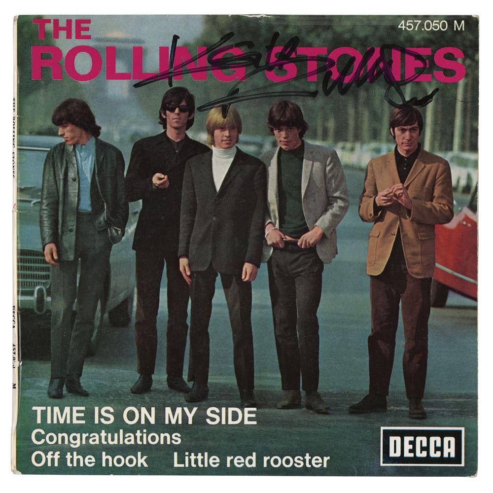 Decca Records 45 RPM French vinyl pressing of the Rolling Stones EP ‰Û÷Time Is On My Side,‰Ûª signed on the front cover in black felt tip by Keith Richards. In fine condition. The record is included. Accompanied by a certificate of authenticity from Tracks.