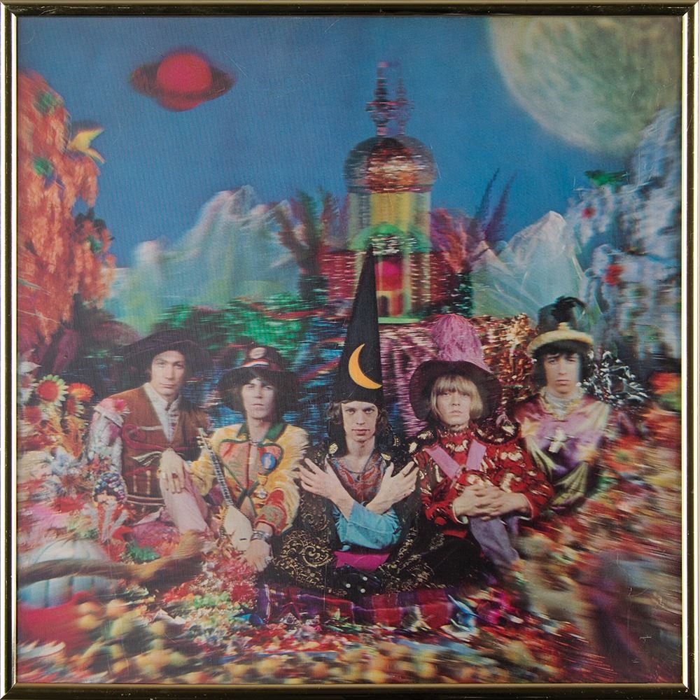 Scarce and impressive lenticular record store promo display for the Their Satanic Majesties Request by the Rolling Stones, 14 x 14, featuring the colorful and hypnotic three-dimensional album artwork. It is estimated that only 150 of these large-size promos were produced. Framed and in fine condition.