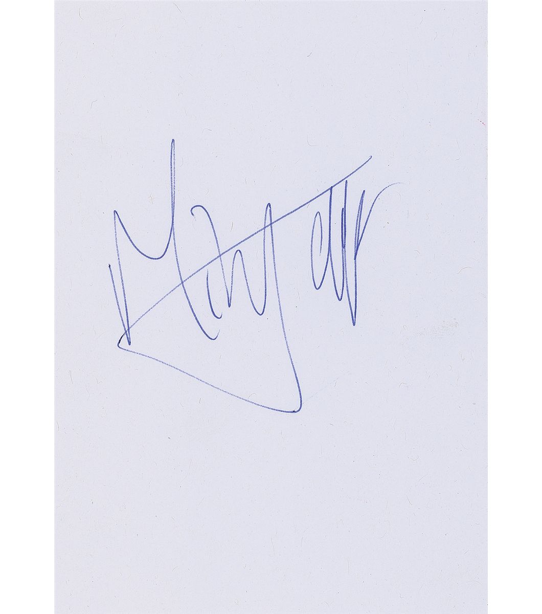 Ballpoint signature, “Mick Jagger,” on a white 4 x 6 album page. In fine condition. Accompanied by a certificate of authenticity from Tracks.