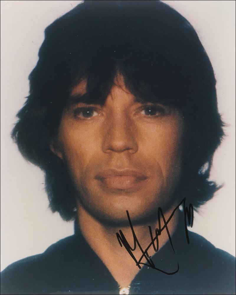 Color glossy 8 x 10 portrait of Jagger, signed in-person in black felt tip. In fine condition, with a few scattered creases and somewhat grainy image. Signature was obtained outside the Grand Hotel in Stockholm, Sweden in May of 1995.