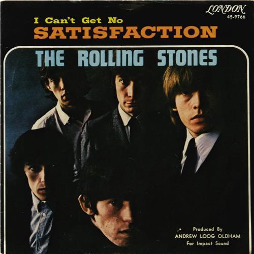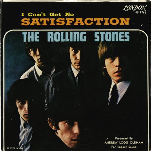 <B>Rolling Stones "Satisfaction" Rare 45 Picture Sleeve London 9766 (1965).</B></I> One of <I>the</B></I> rarest sleeve is this one for the Bad Boys' seventh London single and first #1 chart hit. This is the sleeve only, but it's in great shape, and anyone can find the record! Condition of sleeve only: NM 8.