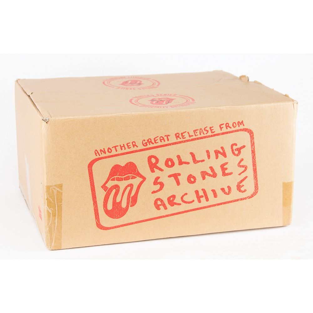 Limited ‘Collector’s Edition’ box set of The Brussels Affair by the Rolling Stones, one of 1,727 issued, containing a never-opened 180-gram triple-vinyl set of the complete Brussels concert, a ‘70s-era ‘Tongue & Lips’ watch, a 200-page book (with slipcase) documenting the entire 1973 European tour, an 18 x 24 lithograph of the tour poster, and a drawstring bag. Includes the original presentation box, lithograph tube, and the “Rolling Stones Archive†shipping box. In overall fine condition, with wear to the cardboard shipping box.