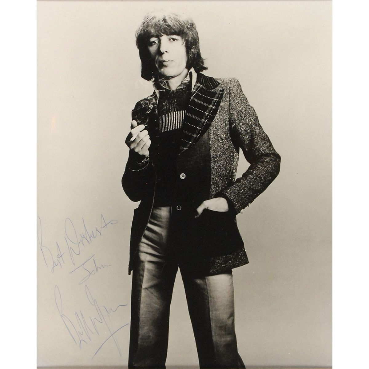 Individual glossy 8 x 10 photos of Bill Wyman and Charlie Watts, each signed and inscribed in blue ballpoint. Each photo is matted to an overall size of 11.25 x 13.5. In fine condition.