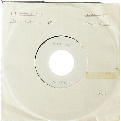 <B>Rolling Stones and Romantics 45 Acetate (Japan).</B></I> We're not sure when this two-sided acetate was released, but it was a while after the Rolling Stones' "Brown Sugar" (1971), since the Romantics' "Talking In Your Sleep" wasn't released until 1983. The tunes may have been used for a Japanese 'Various Artists' compilation. Condition: NM 8. <I>From the GRT Collection</B></I>