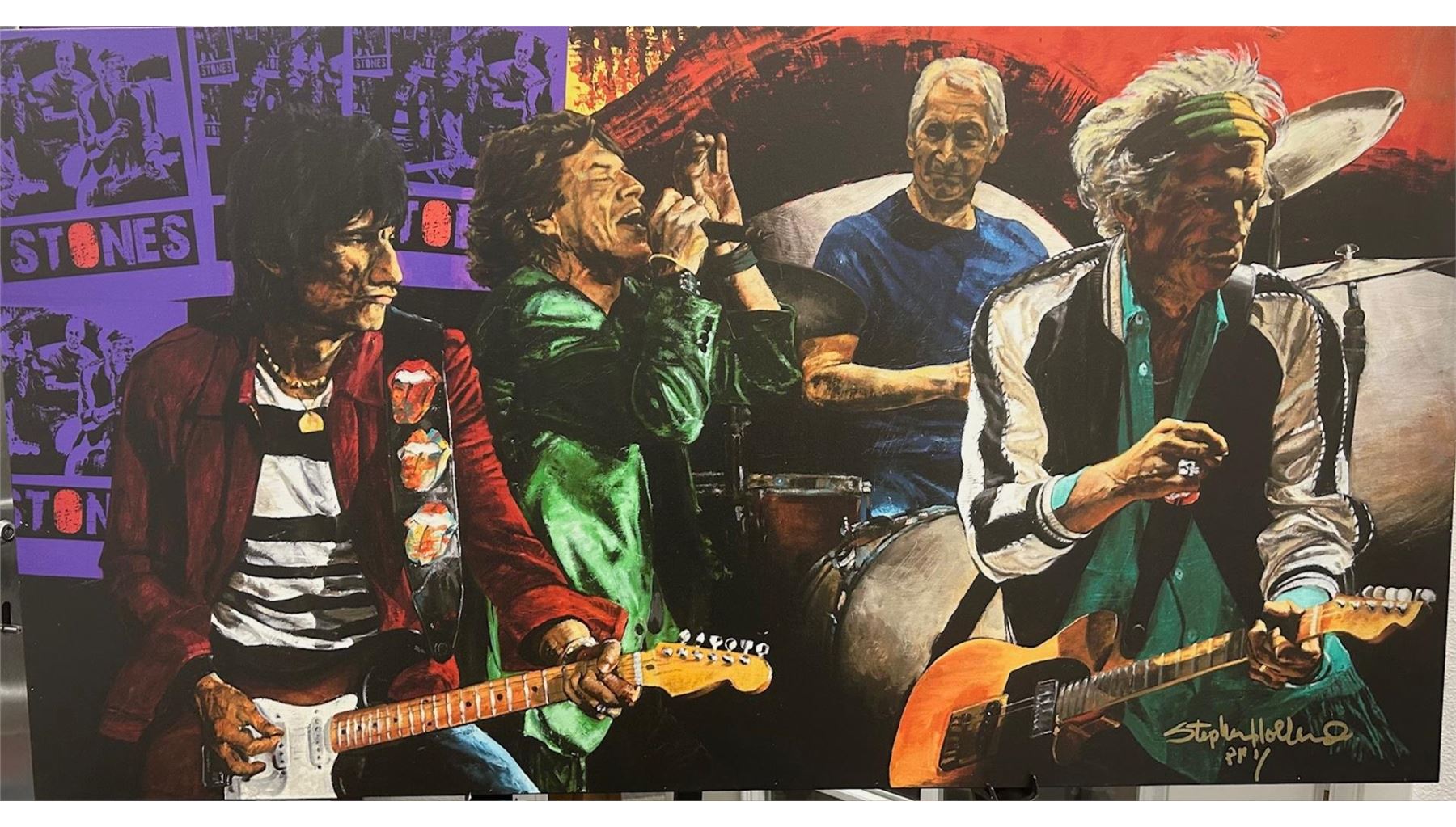 Stephen Holland's The Rolling Stones in concert. 24.5" x 46" Giclee PP1, stretched on box stretchers