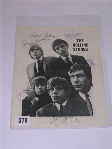 Rolling Stones full set of Autographs inc Brian Jones from a page of early 1960's Concert Programme