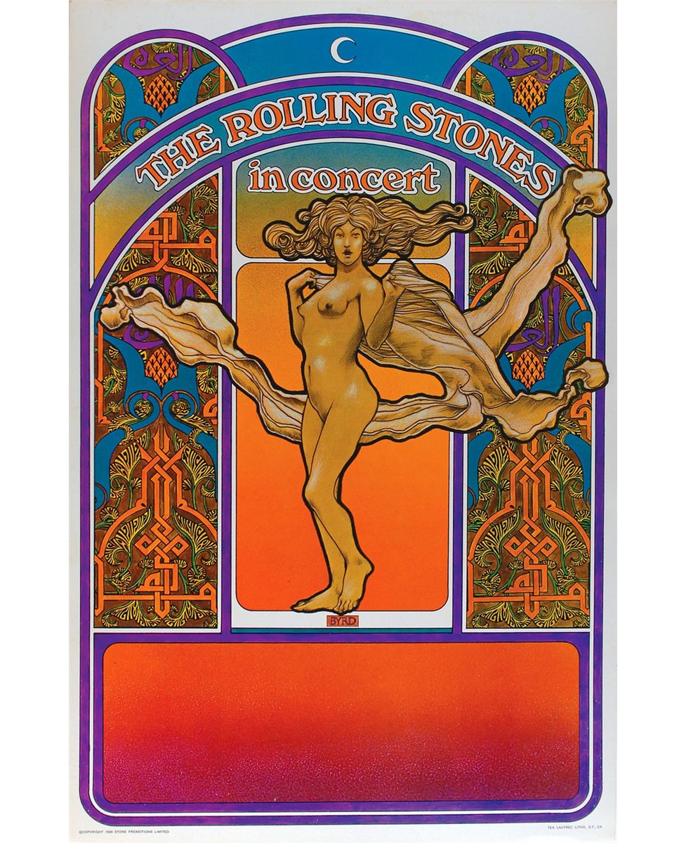 Original unissued color poster, 14 x 21.5, for the Stones’ 1969 US tour. Upper portion bears a beautiful design with a nude woman in the center, with the lower portion left blank for venue information. In fine condition, with a bit of scattered mild foxing along top border. Rock critic Robert Christgau called the tour ‘history's first mythic rock and roll tour.’