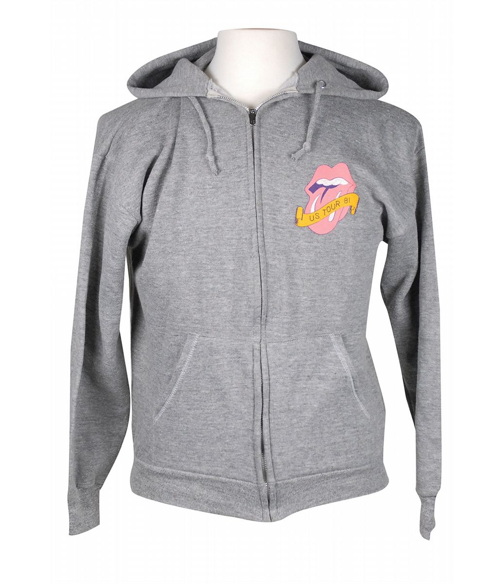 Sweatshirt from the band’s 1981 US tour. Gray hooded sweatshirt features a zip-up front, the tour logo on the left breast, and “Thanks,” printed on the top of the reverse, along with printed signatures of all five band members, as well as their supporting musicians. In fine condition.