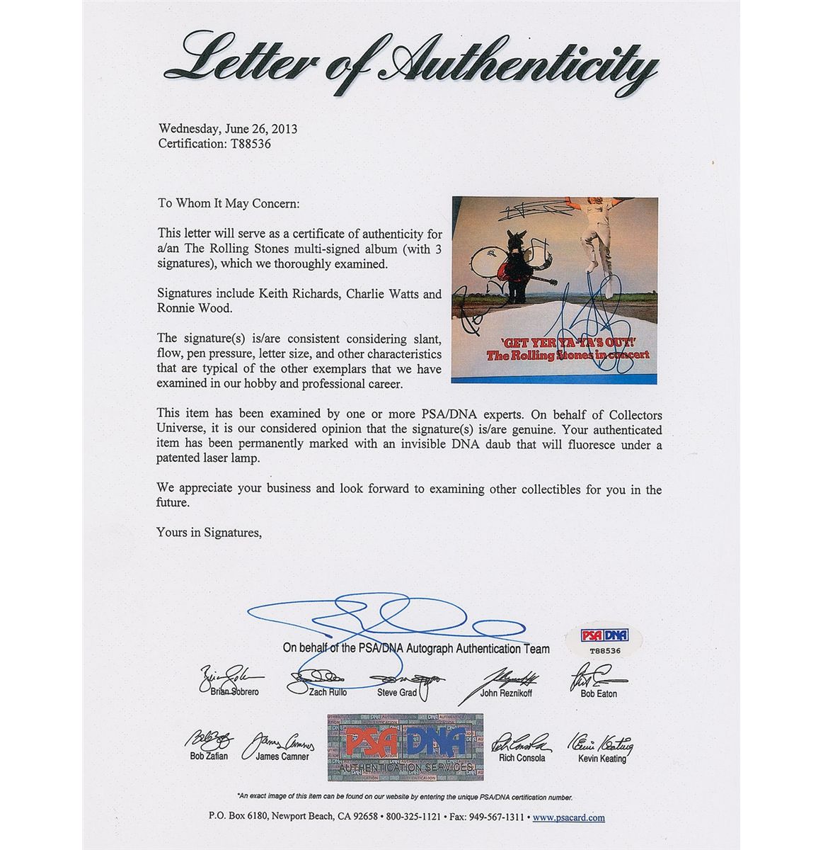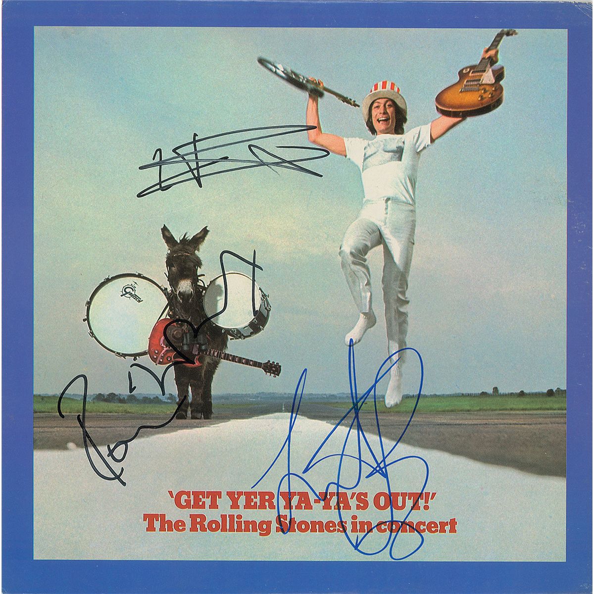 ‘Get Yer Ya-Ya’s Out!’ album signed on the front cover in blue and black felt tip by Keith Richards, Ronnie Woods, and Charlie Watts. In fine condition, with trivial corner tip dings. The record is included. Accompanied by a full letter of authenticity from PSA/DNA.