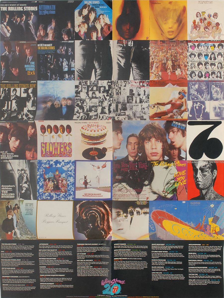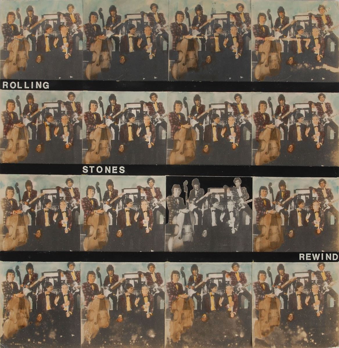 Albums: Their Satanic Majesties Request; three copies of Some Girls (two sealed); Aftermath; The Rolling Stones (stereo, electronically re-processed); ‘Get Yer Ya-Ya’s Out!’; Let It Bleed; 12 x 5; December’s Children (And Everybody’s); Flowers; Undercover; Made in the Shade; Emotional Rescue; Sticky Fingers (with working zipper); More Hot Rocks (Big Hits & Fazed Cookies); Between the Buttons (sealed); Through the Past, Darkly–Big Hits Vol. 2 (still sealed); Out of Our Heads (sealed); Big Hits–High Tide and Green Grass (sealed); three copies of Rewind; Got Live If You Want It! (sealed); and The Rolling Stones, Now! (sealed).