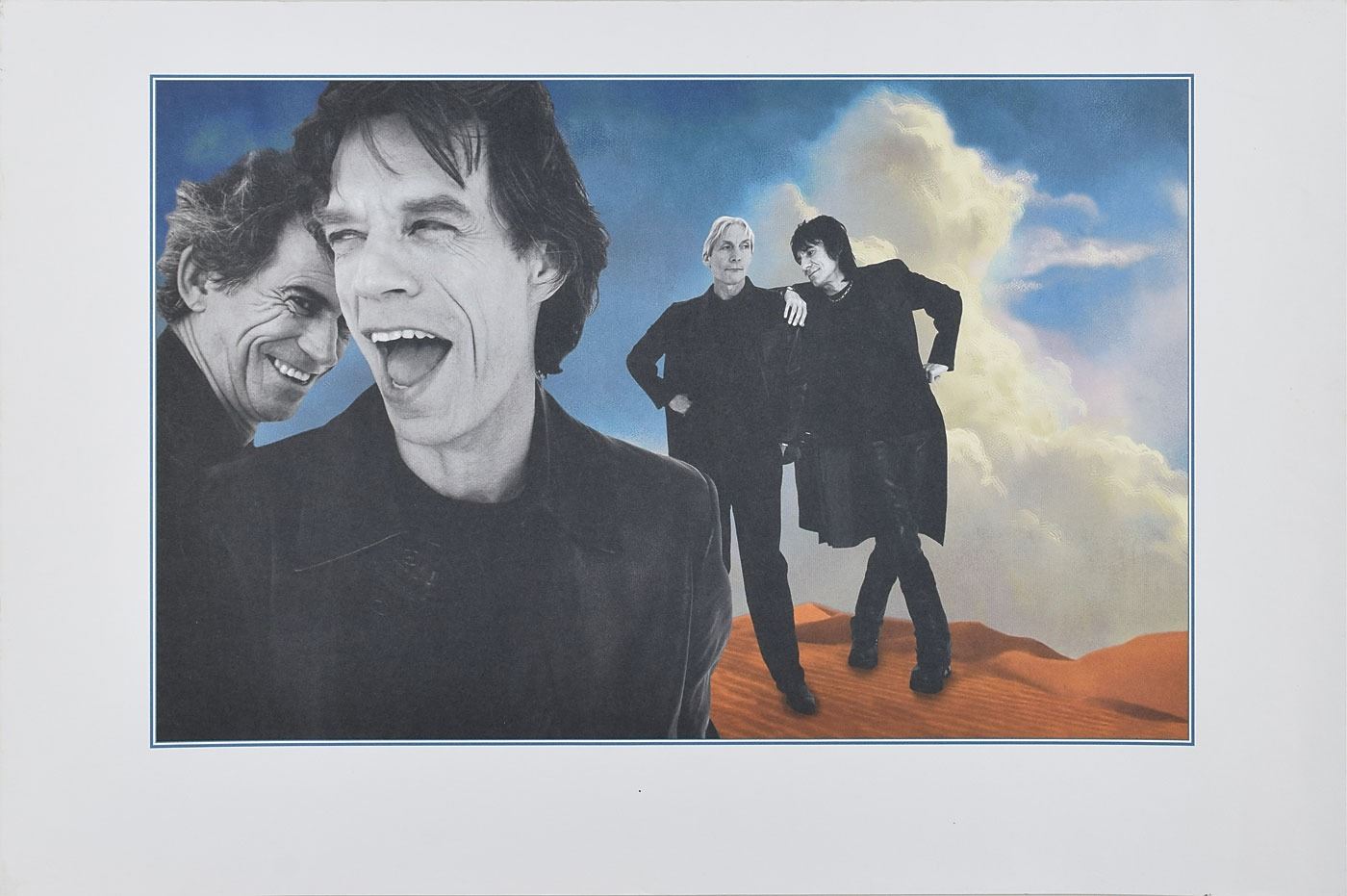 Uncommon color 18 x 12 print of the Rolling Stones issued to promote the release of the Bridges to Babylon album, which depicts the band against a dramatic backdrop of desert and sky similar to the background of the album sleeve artwork. In fine condition.