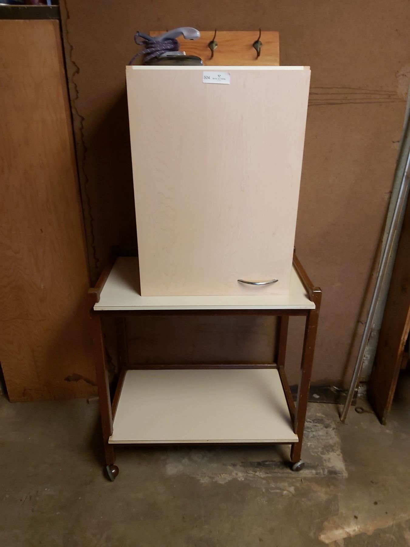Rolling Table  Cabinet  Vintage General Electric Iron and coat rack
