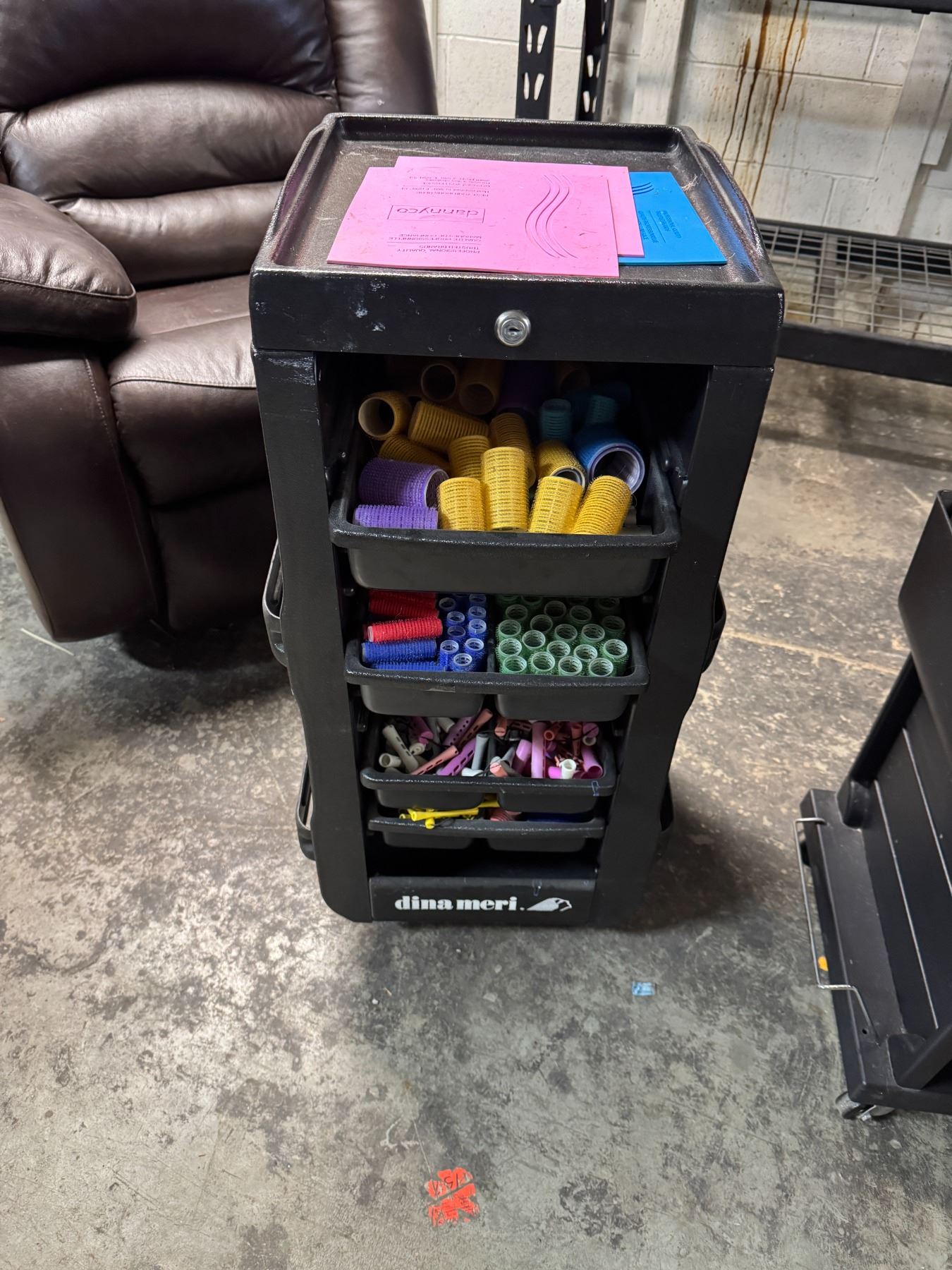 Rolling cart with curlers and per