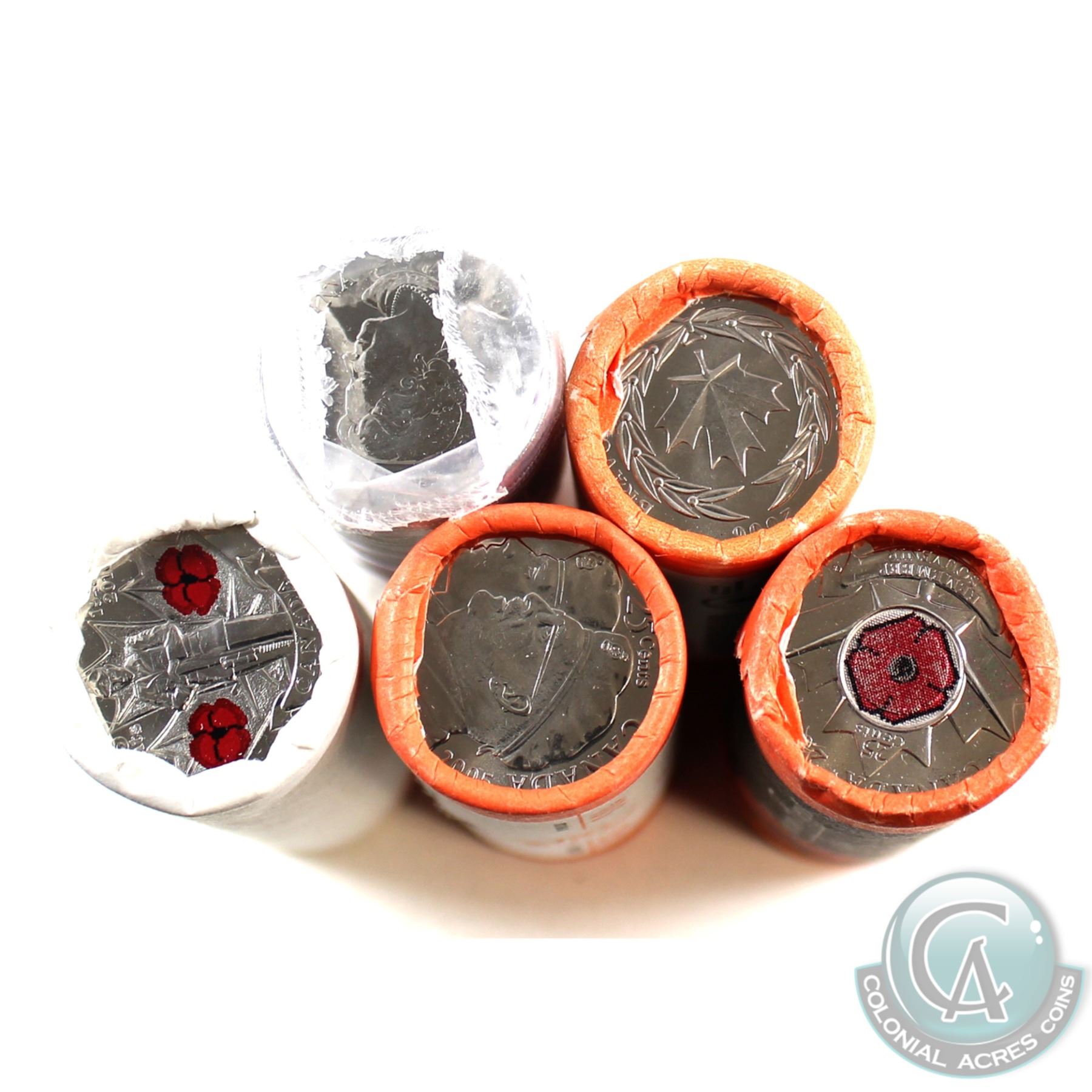 Rolls: 25-cent Original 2004 Poppy, 2005 Veterans, 2006 Bravery, 2010 Coloured Poppy & 2015 Some Coloured Flag. 5 Rolls.