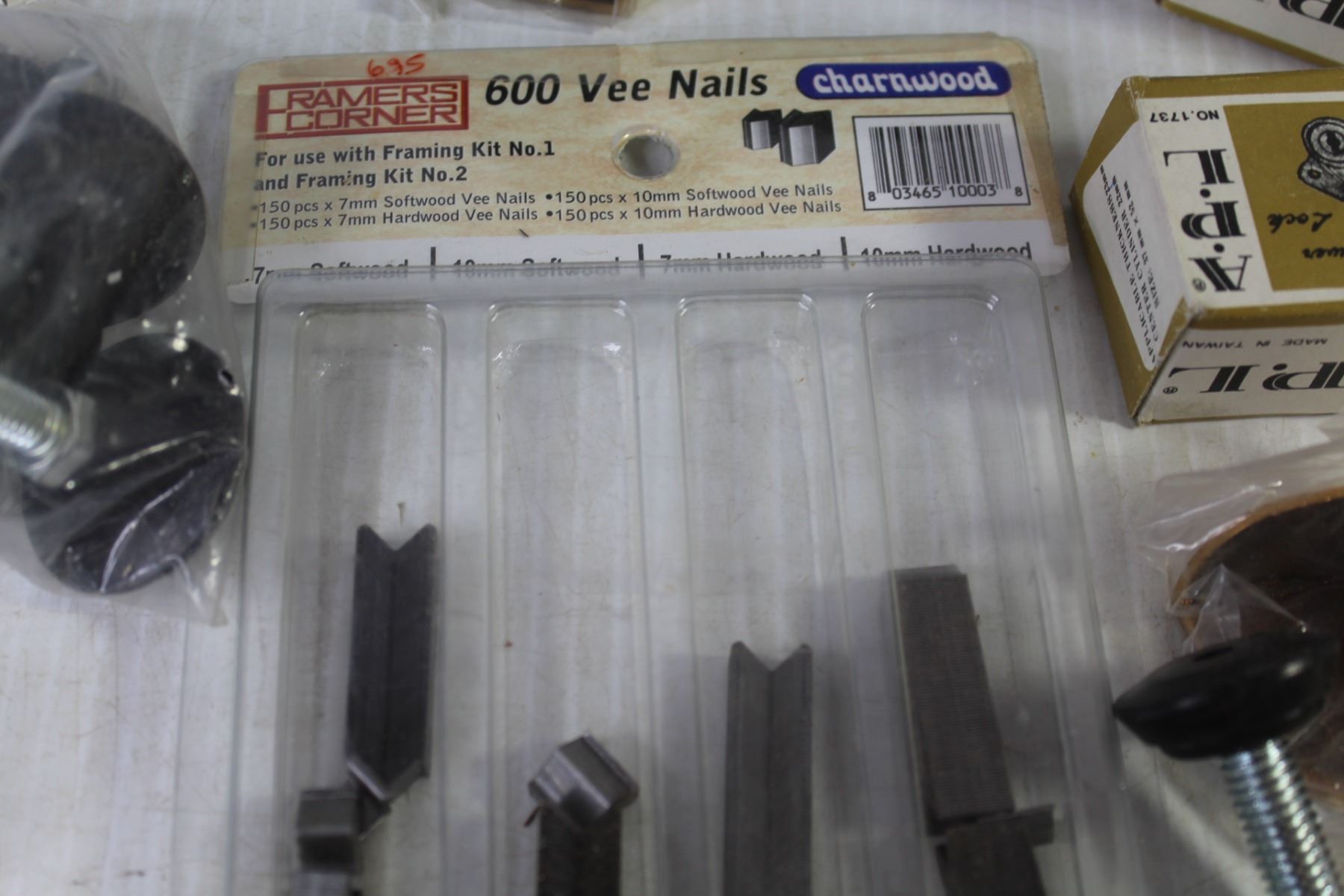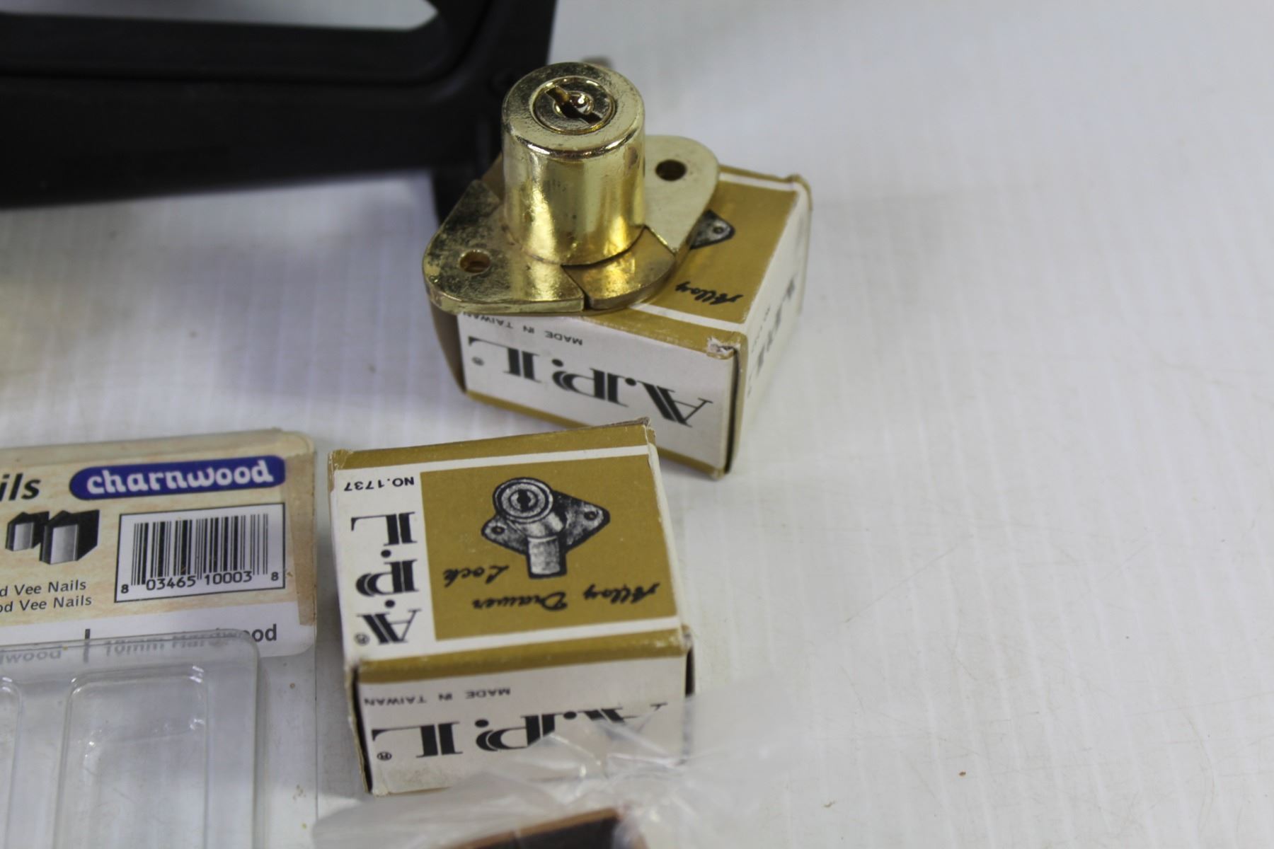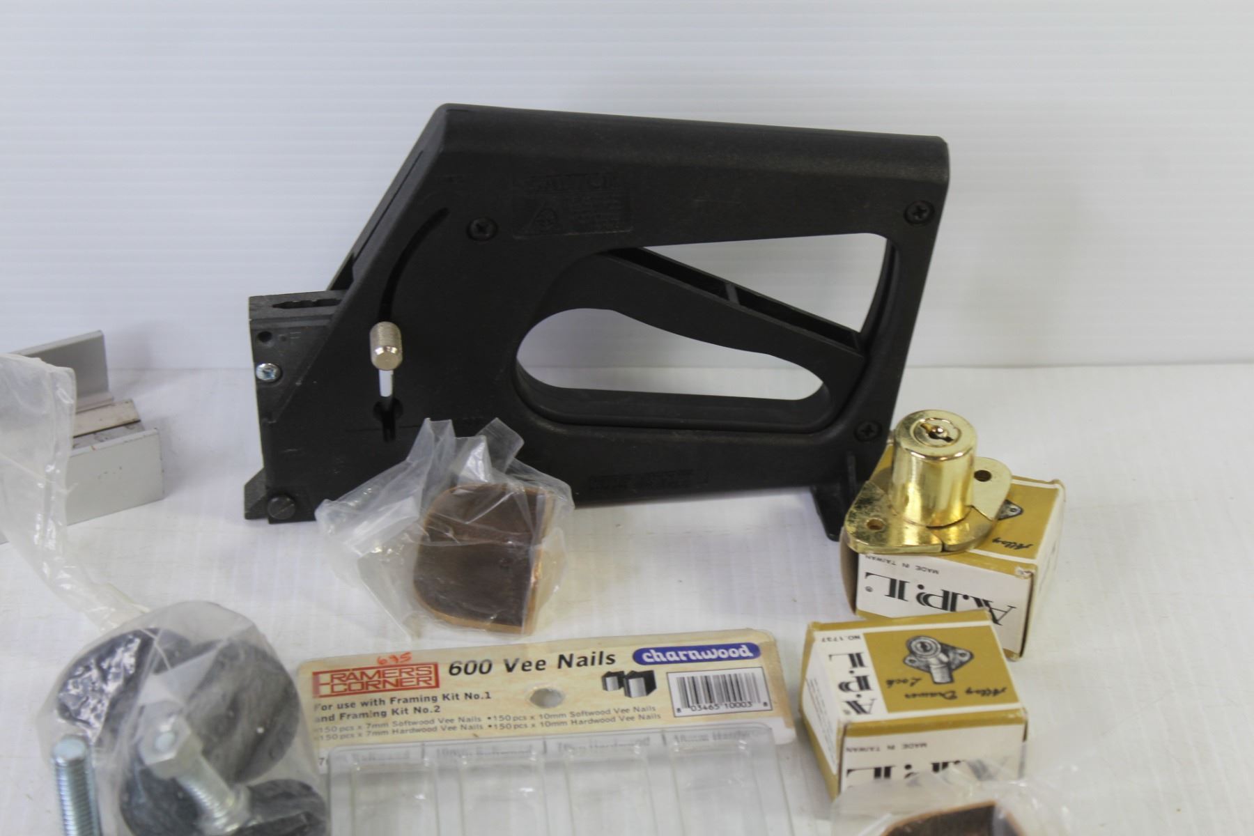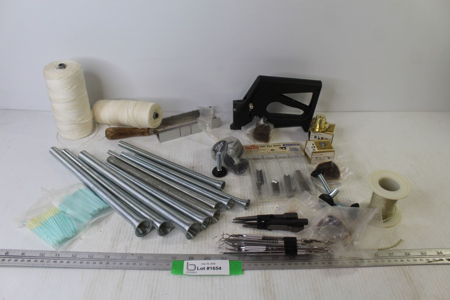 Rolls of String - Mitre Box w/Saw - Stapler - Finish Applicators - Springs - Dental Picks - Nail Sets - Misc. Items