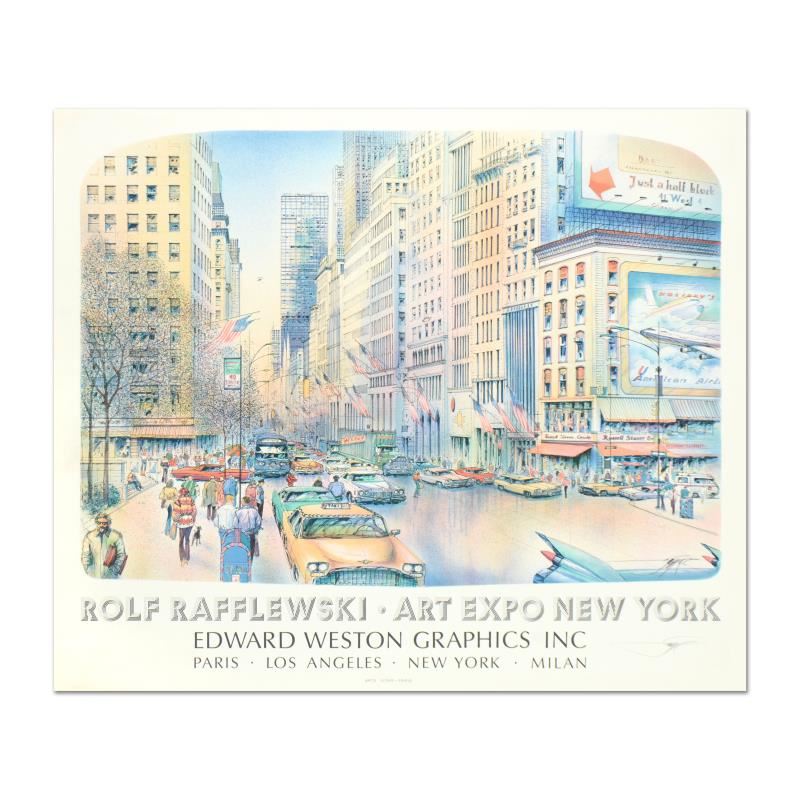 "Rolph Rafflewski - Art Expo NY" is a lithograph on paper by Rolph Rafflewski, hand signed by Rolph Rafflewski. Includes Letter of Authenticity. Measures approx. 30" x 25" (border), 27" x 24" (image).
