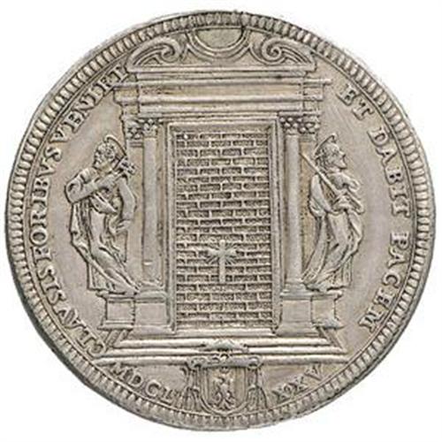 Roma. Clemente X (1670-1676). Piastra 1675 del Giubileo. M.13. R. AG. Fondi ritoccati. BB+.