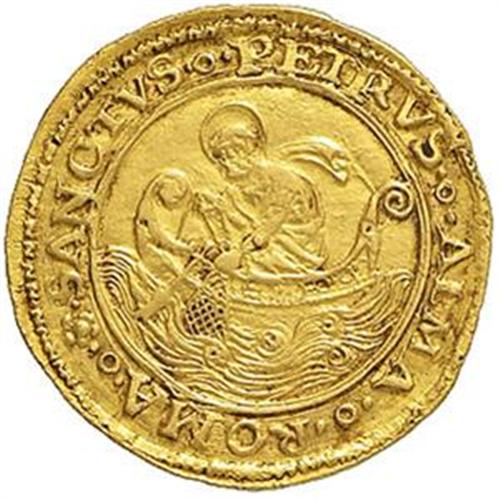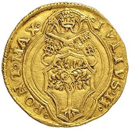 Monete e Medaglie di Zecche Italiane. Roma. Giulio II (1503-1513). Doppio fiorino di camera. M.tav.21,8 var. gr. 6.90 RR. AU. SPL+.
