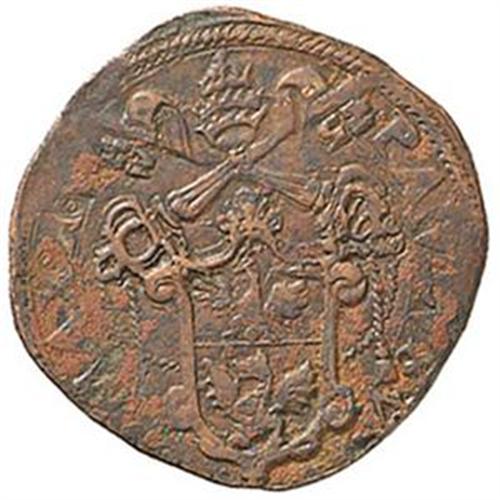 Roma. Paolo V (1605-1621). Mezzo baiocco A.VI. M.132. AE. MB.